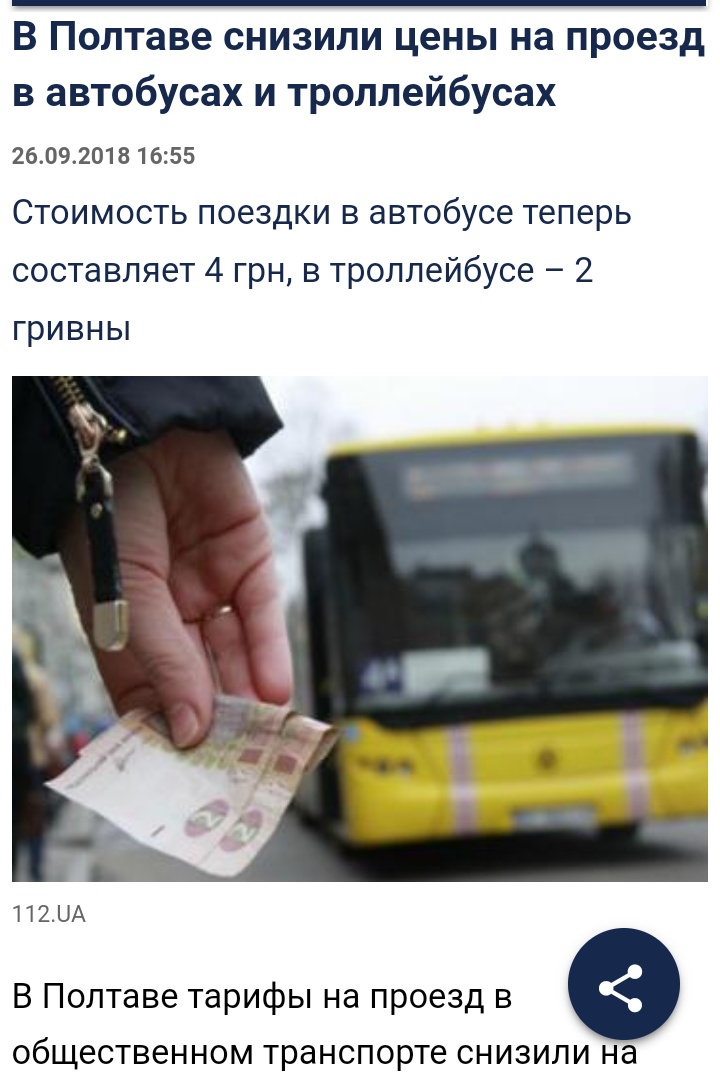 У них все получится...Keon писав: ↑19 вересня 2018, 18:19На черговій сесії Чернівецької міської ради, 27 вересня, депутати спробують повернути старий тариф у 4 гривні на проїзд у маршрутках. Проїзд у 2 гривні для школярів депутати пропонують залишити.