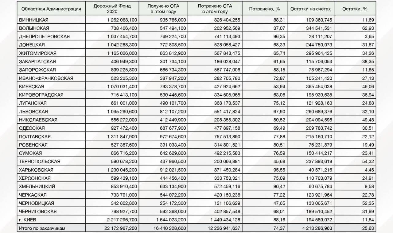 Я так розумію, що у Волинській, Київській, Миколаївській, Тернопільській та Чернівецькій областях з дорогами все супер, тому вони використали лише половину грошей?