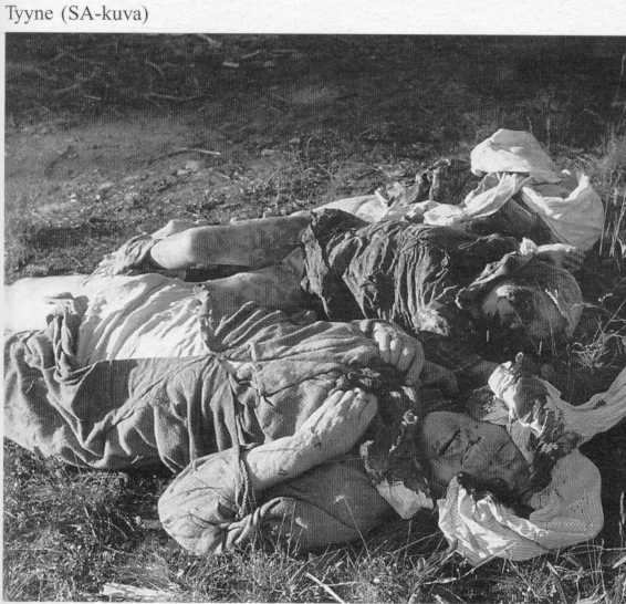 Но хорошо известно, что партизаны уничтожали не только семьи полицаев. Так, согласно финским документам, приведённым Веикко Эрккиля (Veikko Erkkilä, (1999). Vaiettu sota, Arator Oy. ISBN 952-9619-18-9), в Финляндии советские партизаны уничтожили около двухсот мирных жителей, в основном, женщин, детей и стариков. Известность получило нападение советских партизан на хутор Лямсянкюля, в ходе которого партизаны согнали хуторян в деревянный дом и сожгли его. В результате рейда погибли семь мирных жителей, включая двух детей шести и трёх лет от рода. В деревне Лаанила в северной Финляндии 4 июля 1943г. советские партизаны обстреляли гостиницу и грузовик, в котором ехали мирные жители, в результате чего погибло более 10 человек.