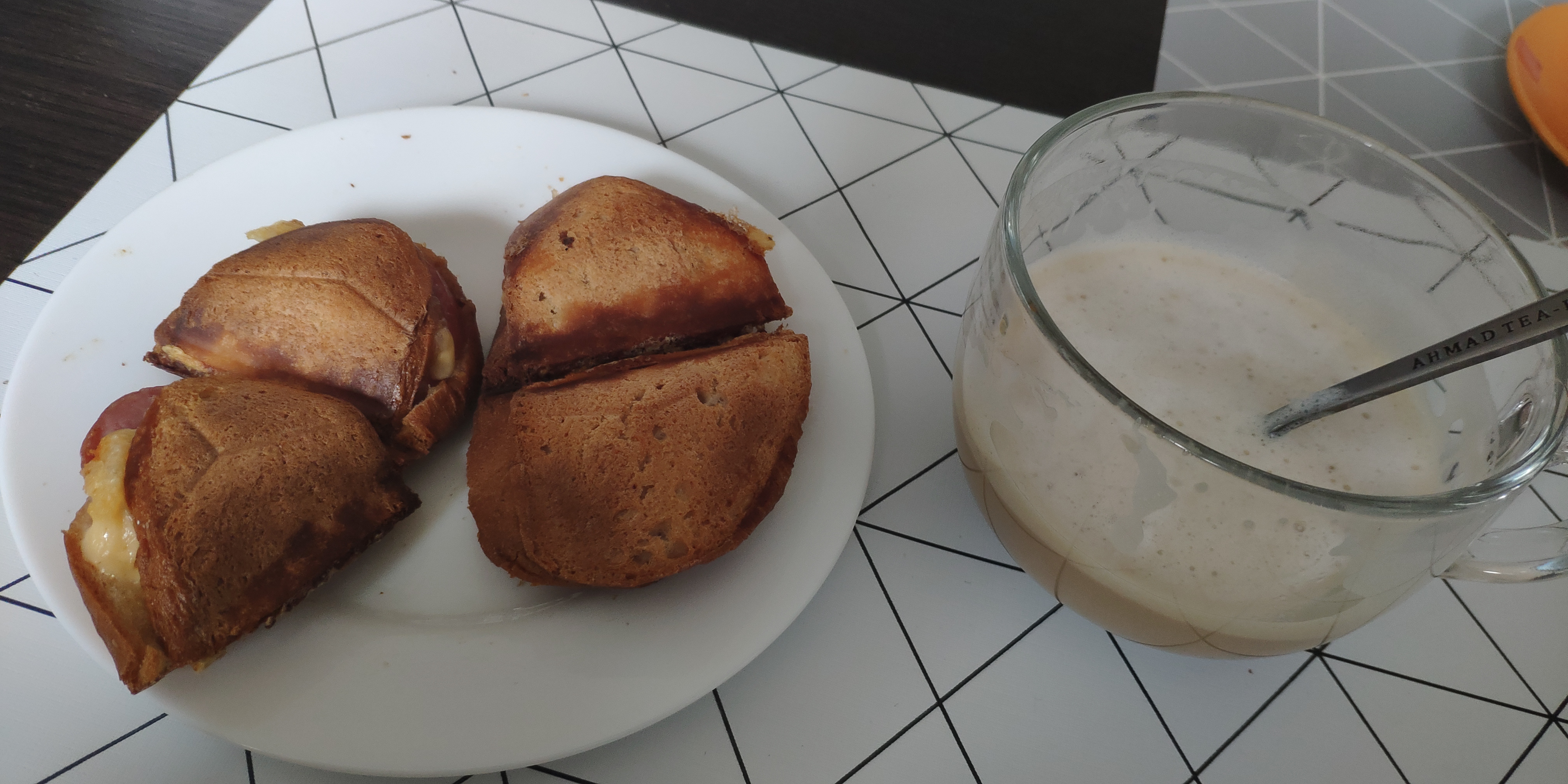Обновлю) Сегодняшний завтрак) (тосты с гол.сыром,колбаса Zywiecka+латте, зерно Mellita) 10мин.и готово,при наличии составляющих) и аппаратуры)