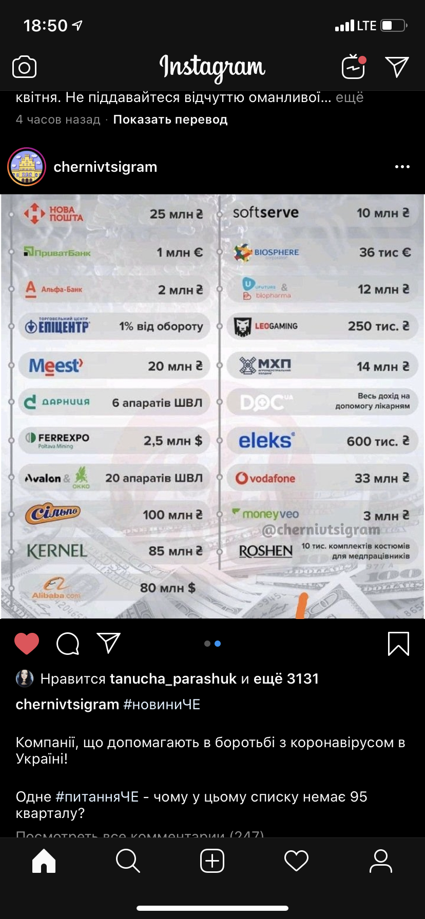 Тут правда далеко не все компании, которые пожертвовали денег, но 95 квартала нету (