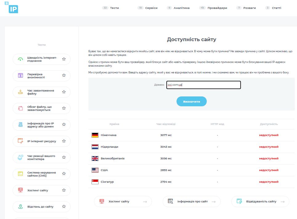 "Немає зв’язку із сайтомХост icci.com.ua довго не відповідає.