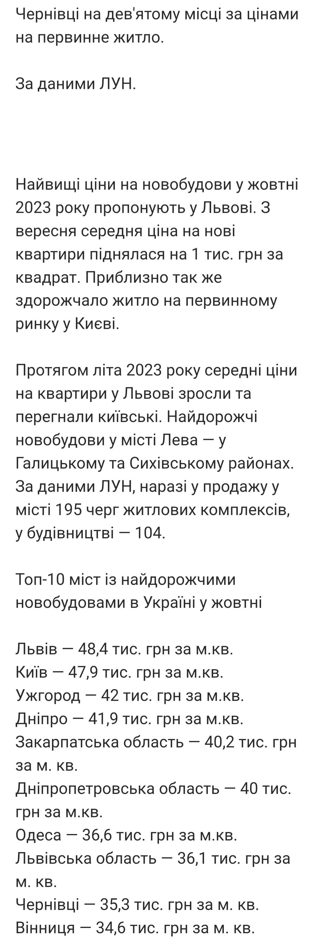 Креатив - прокоментуй/розжуй нам. ,,пАкупАть ІлІ праАдавАть,,?Master писав: ↑13 жовтня 2023, 20:58У Чернівцях дорожчають квартири