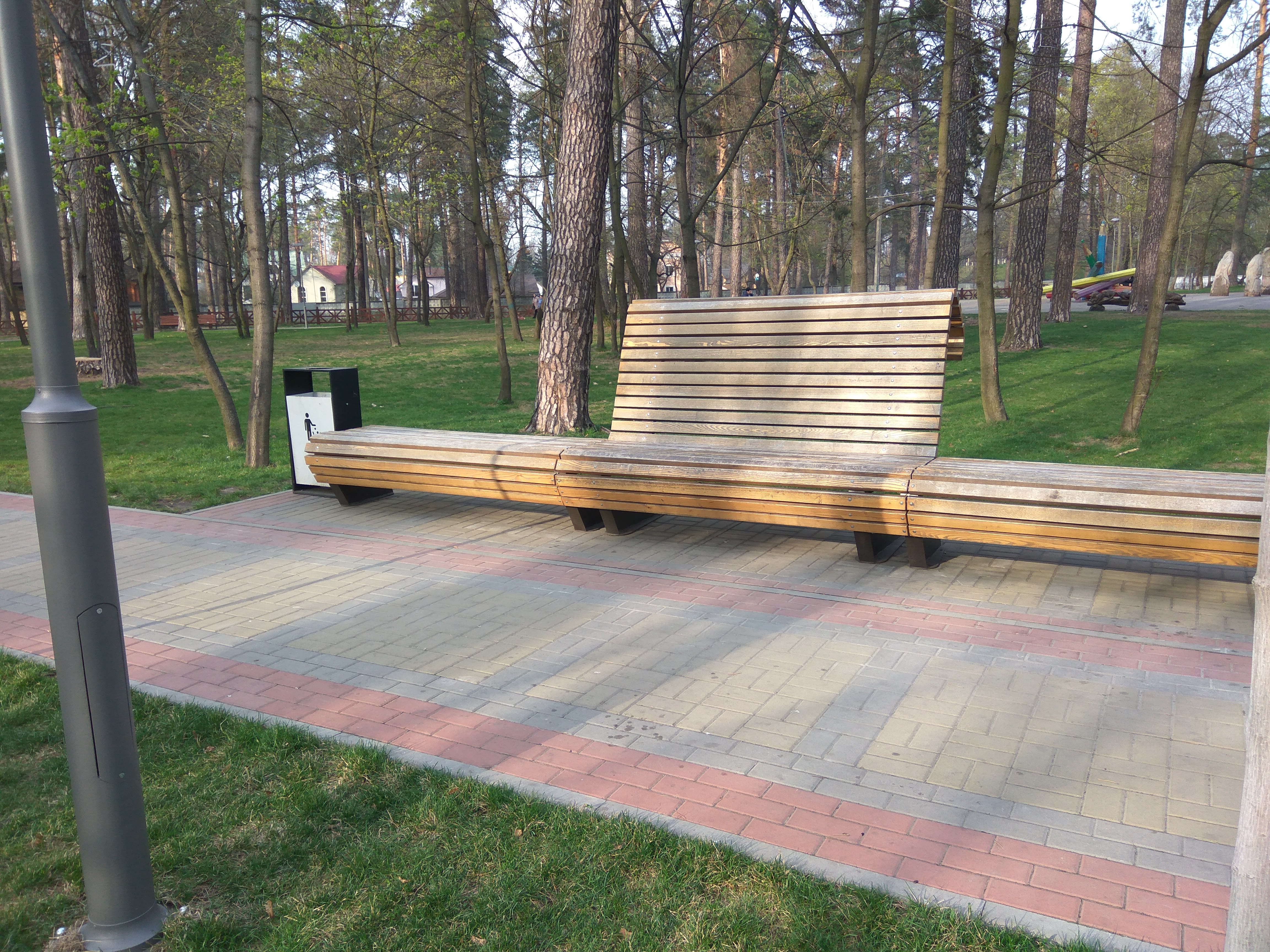 Дорого от дома до основной дороги. Дворы справа, основная дорога слева, а это по сути придомовая територия, но едя по ней я не мешаю пешеходам, плюс для них есть тротуар: По дороге можно отдохнуть, есть лавочки. На первом этаже этих домов всякие магазины, стоматологии, тренажерки, диетически кабинет, кафе, нотариус, парикмахерские, банк, вейп бар. Детский садик: Просто дорога внутри города, не трасса: Водители без галсткуков, но маршрутка не самая старая. Трамвая или троллейбуса в Буче нет. Общественная зона: Вообще огромное количество детских площадок, не только возле новостроек или в парках, а вообще везде. Но не только детских, есть и спортивные, и стадион и футбольные/баскетобольные поля. Возле многих магазинов есть держалки для велосипедов. По самому городу нет вело-дорожек, так чтобы ехать на работу, но они есть в парках и в общественных зонах. Там же есть прокат велосипедов, гиробордов и прочего. Но про парки я напишу отдельно.