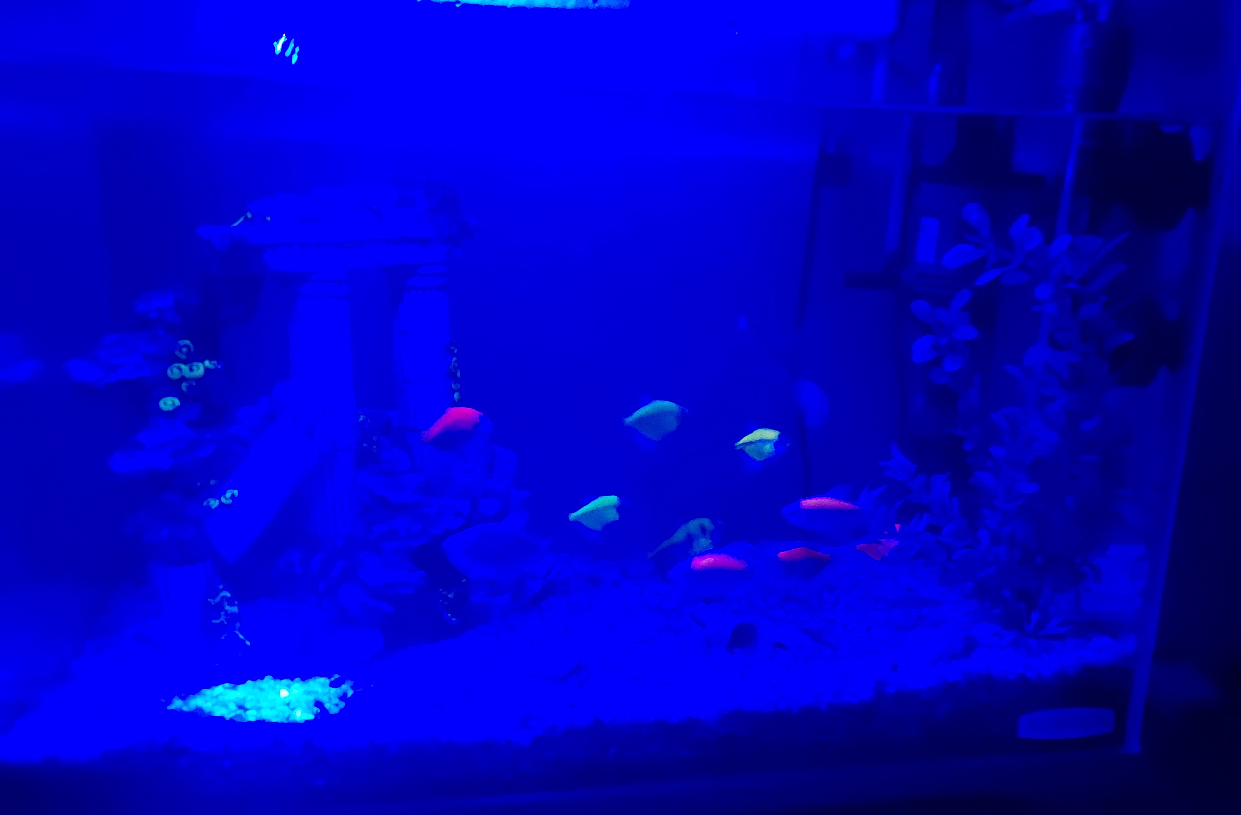 Вот пока сделал из двух батареек и синего светодиода подсветку для аквариума.