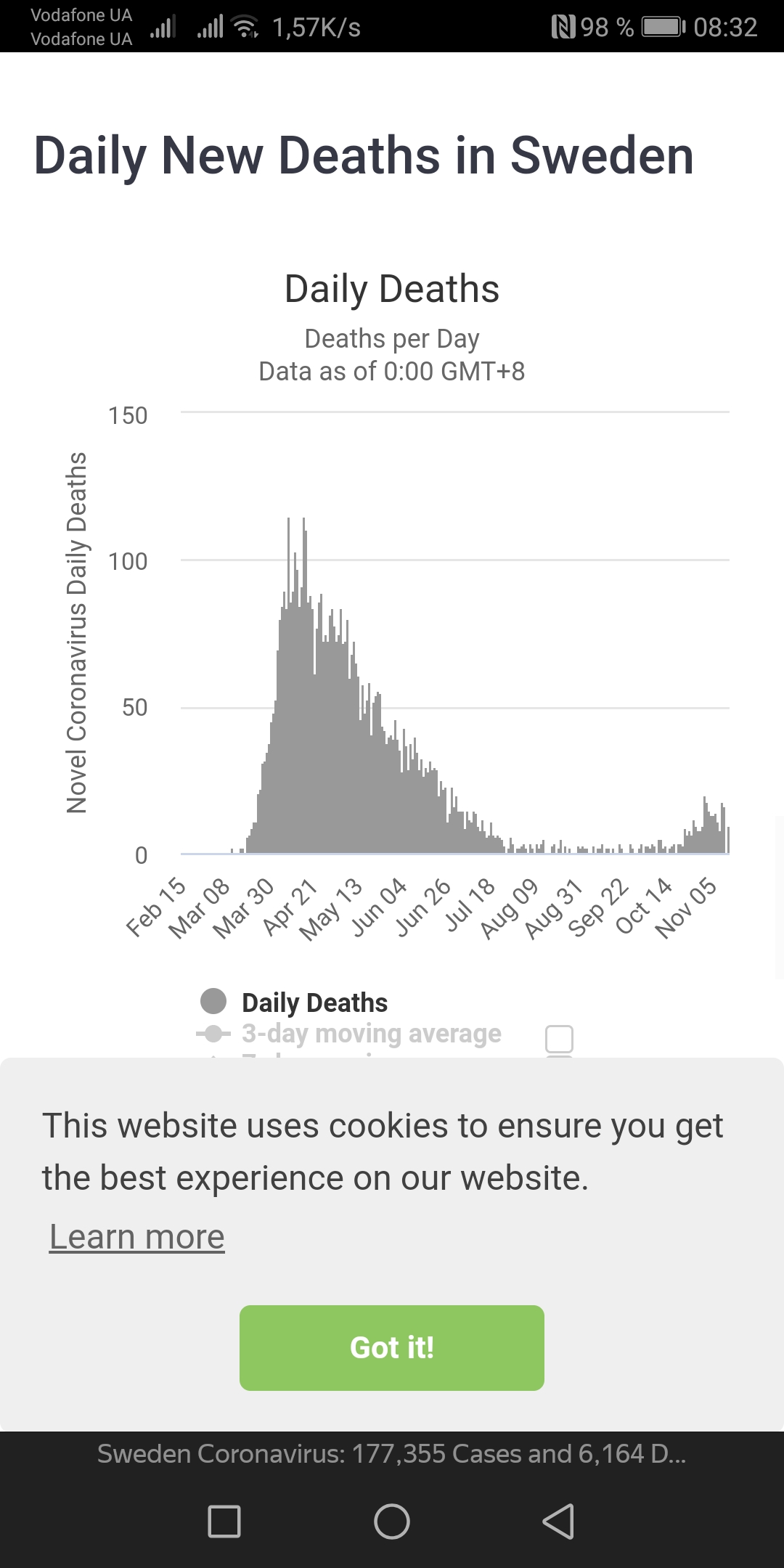 По данным университета Джонса Хопкинса, в Швеции к 12:00 мск 12 ноября было зафиксировано 166 707 случаев заражения коронавирусом и 6082 летальных исхода. В Норвегии — 26 511 и 285 случаев соответственно, в Финляндии — 18 345 и 365. В Дании зафиксировано 58 466 инфицированных и 753 умерших.