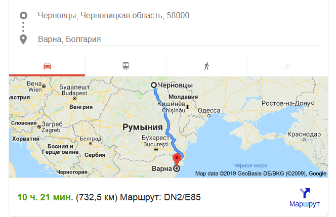 732,5 км до Варни (пляжі ще далі) - європейскими дорогами та 654,7 до Затоки - нашими вітчизняними. Згоден - "нашими", хоча як це непатріотично, задоволення ще те ))).