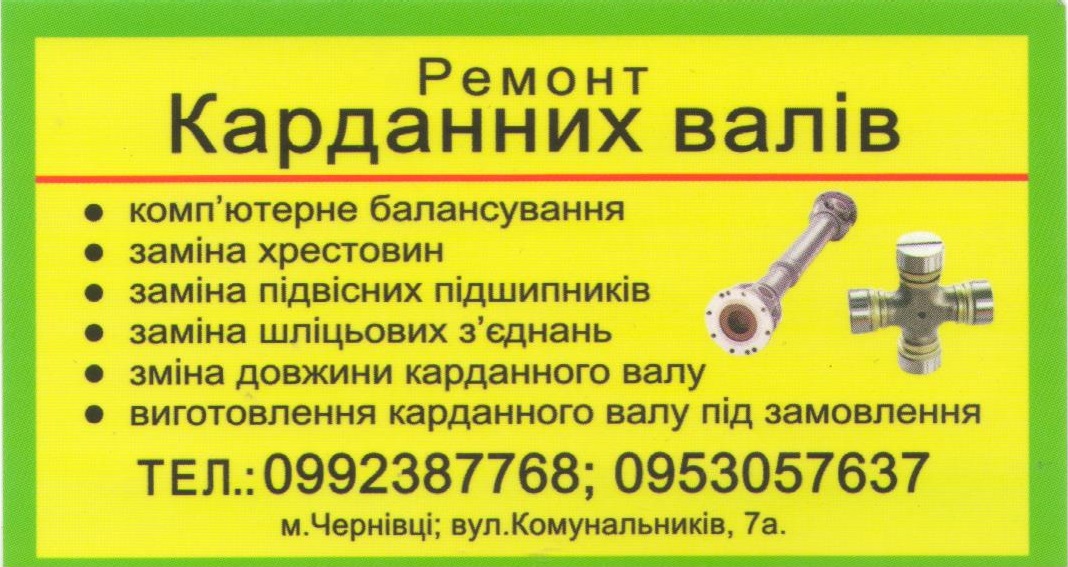 Ремонт и компьютерная балансировка карданных валов в г. Черновцы.ул Комунальников 7а.тел:0992387768.