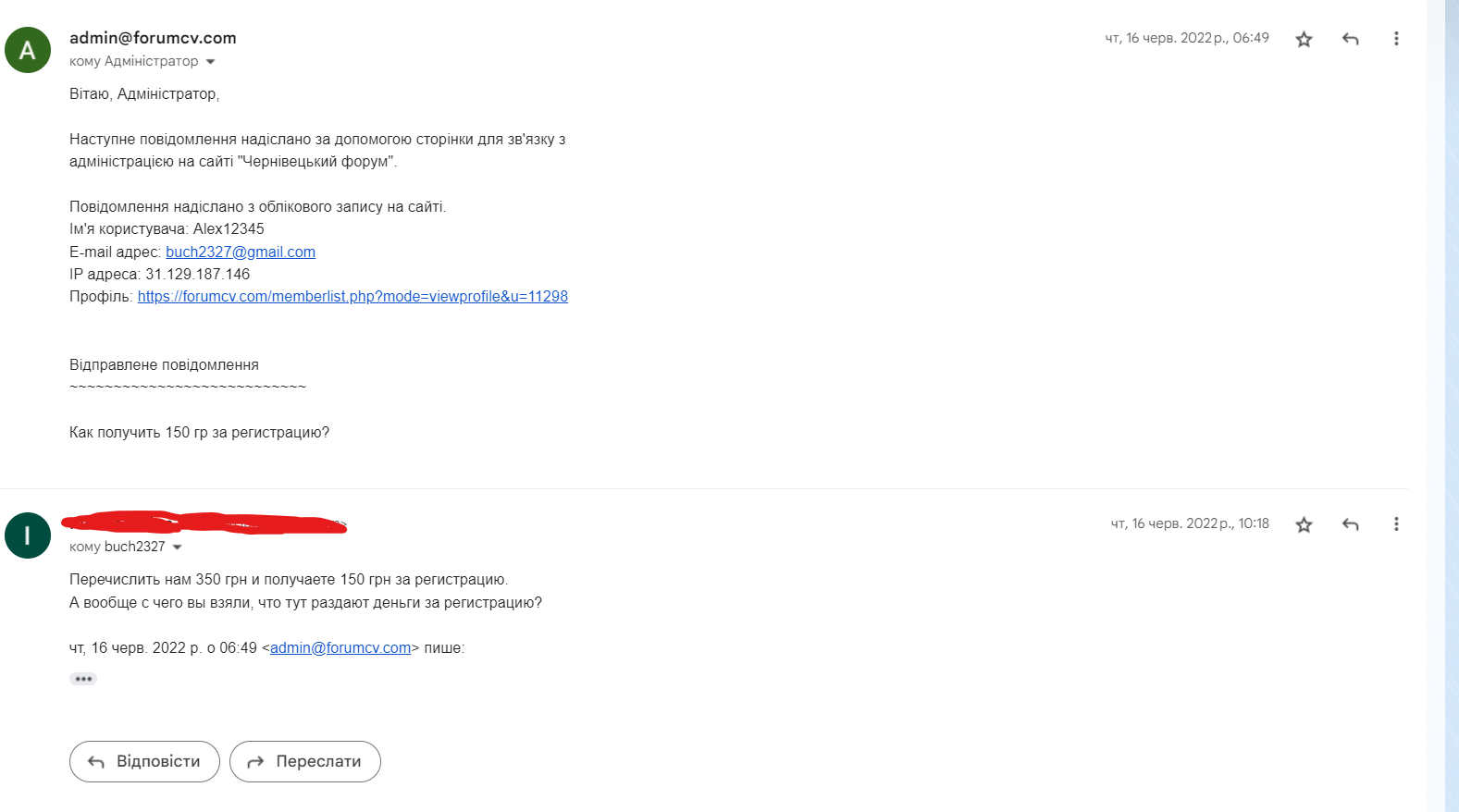та это фигня. Мне уже пару раз падало мыло от каких-то личностей типа "ну всё, я зарегался на вашем форуме, когда вы скинете мне мои 15 баксов?" На мой вопрос где они взяли такое предложение - тишина.