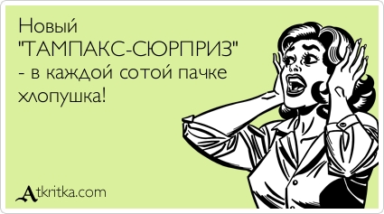 Заходит сегодня молодой парень. Спрашивает тихонько, у вас женские хлопушки есть? Я подумал что не расслышал, говорю что хлопушками не торгуем. Он походил по магазину и такой радостный -Так вот же! Показывает на тампоны Котех. Мы потом с женой долго ржали