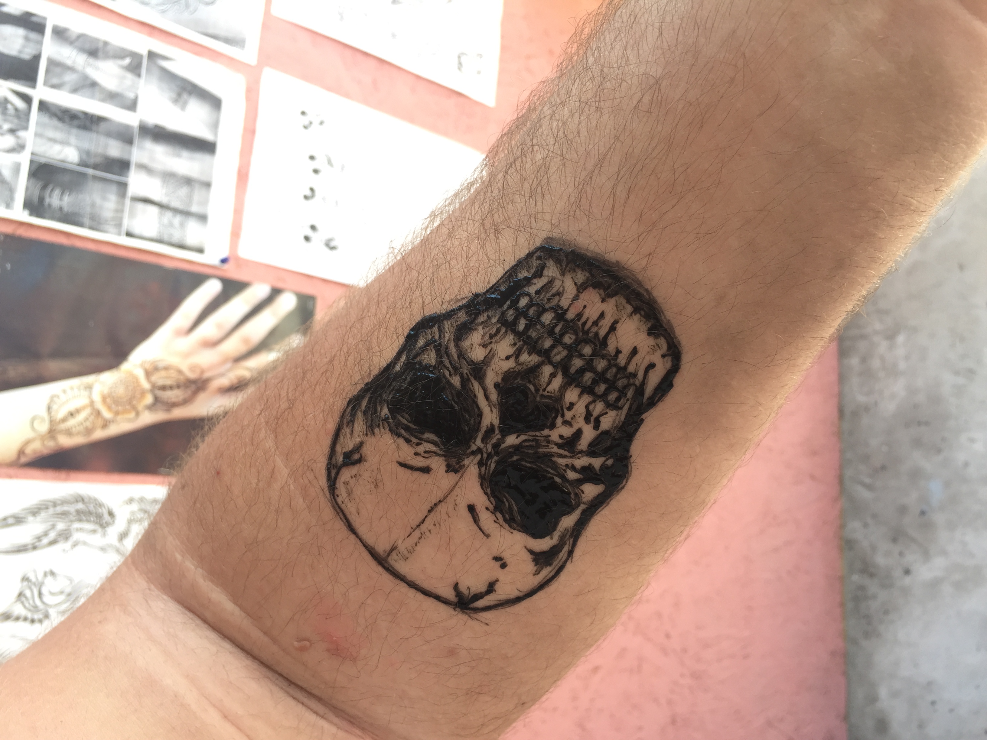 Я на море мужика задолбал и он мне нарисовал хной череп) я тогда задумался о переносе его в настоящее тату.