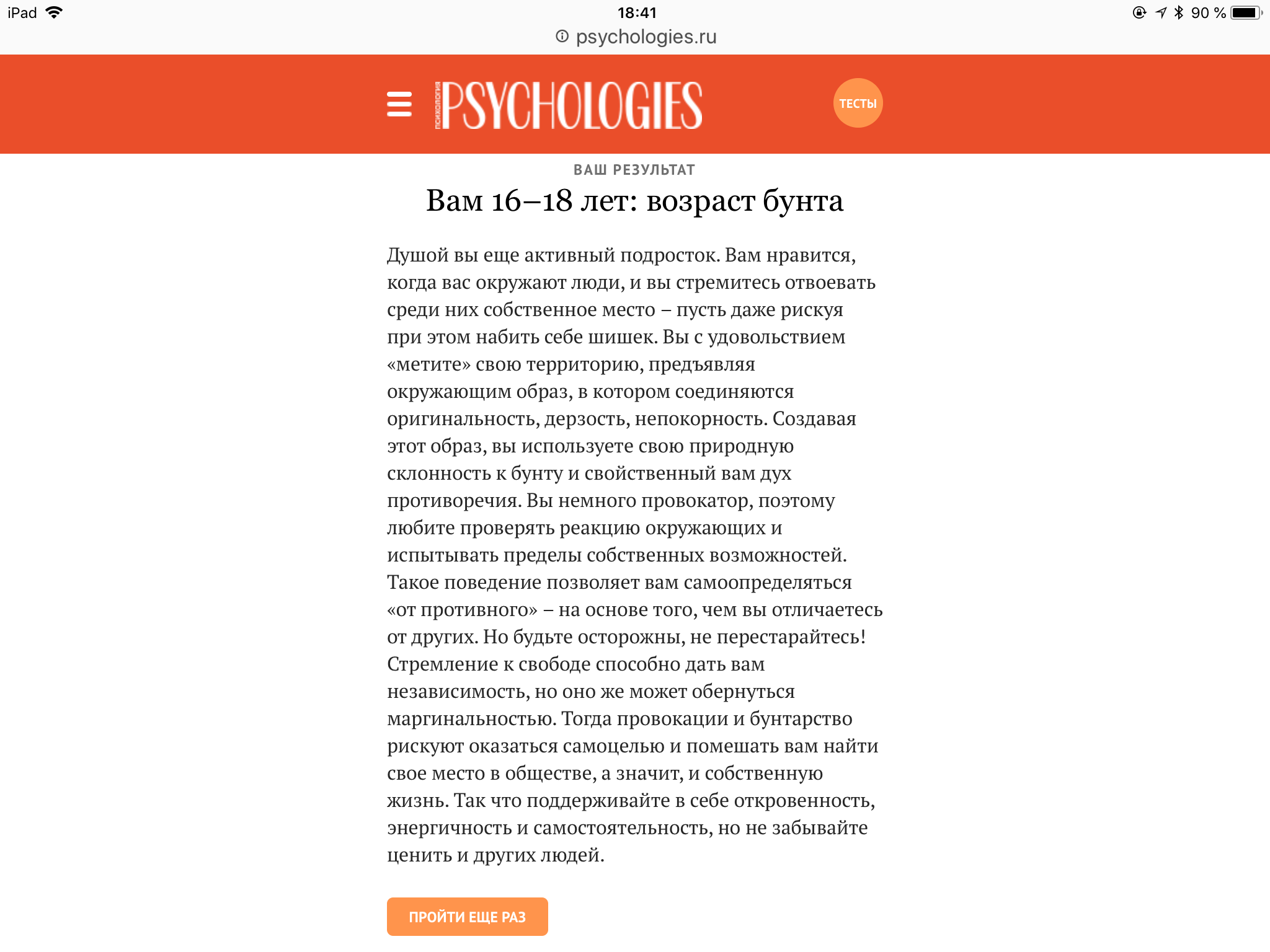 Каков ваш внутренний возраст? http://www.psychologies.ru/tests/test/15/