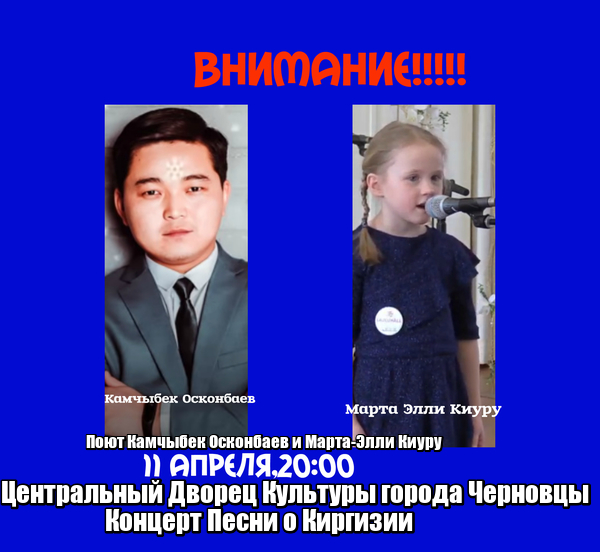 Re: Концерт "Песни о Киргизии" будет 11 апреля в Центральном ДК г. Черновцы