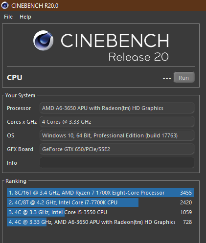 А еще более старый сайнбенч не мог поставить? Там 9 версию например?)andrey_mix1982 писав: ↑10 квітня 2019, 10:26Я выше привёл скриншоты сравнения Q6600 (в разгоне 3.0) с i3-2100 и в синтетике CINEBENCH процессор i3 показывает меньшую производительность.