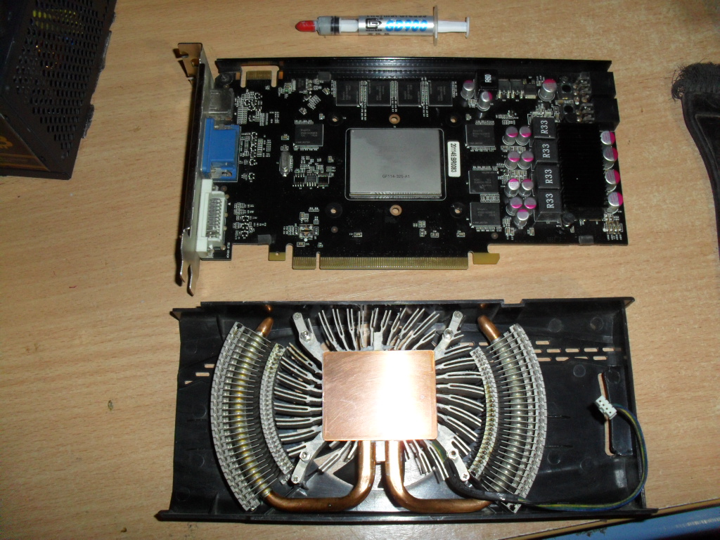 На фото гляньте в каком паскудном и запущенном состоянии она была как ко мне попала. Хотя охлад там качественный, с термотрубками и подложка радиатора полностью медная.