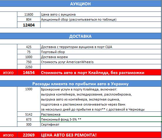 Расчет включает в себя все расходы включая постановку на учет. Стоимость ремонта фирма оценивает в своем отделе по запчастям и всегда считает по максимуму для самого плохого расклада.