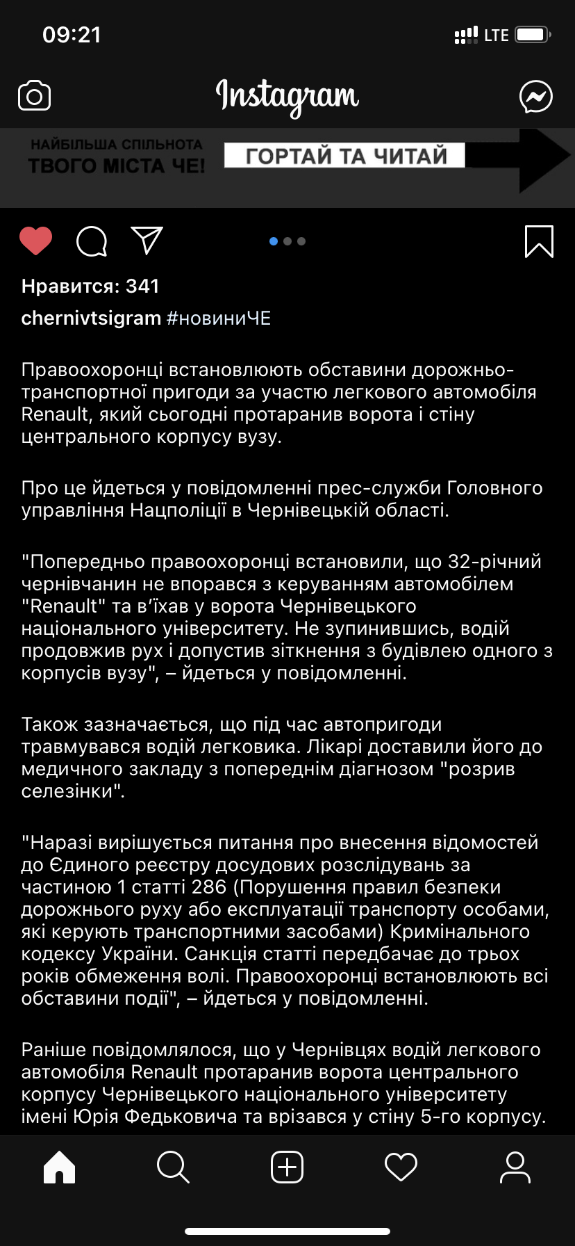 Re: У Чернівцях водій легкового автомобіля Renault протаранив ворота центрального корпусу Чернівецького національного ун