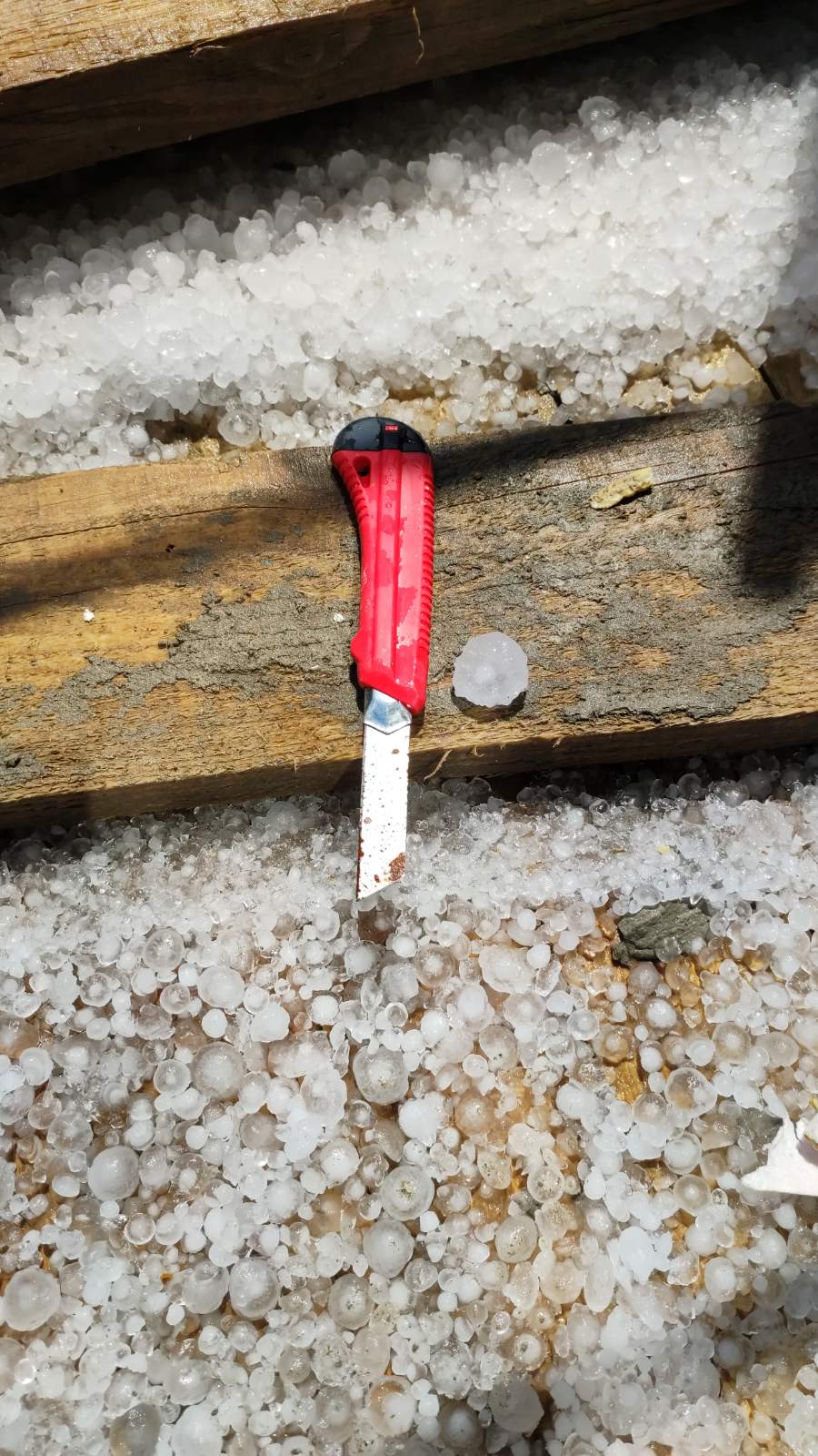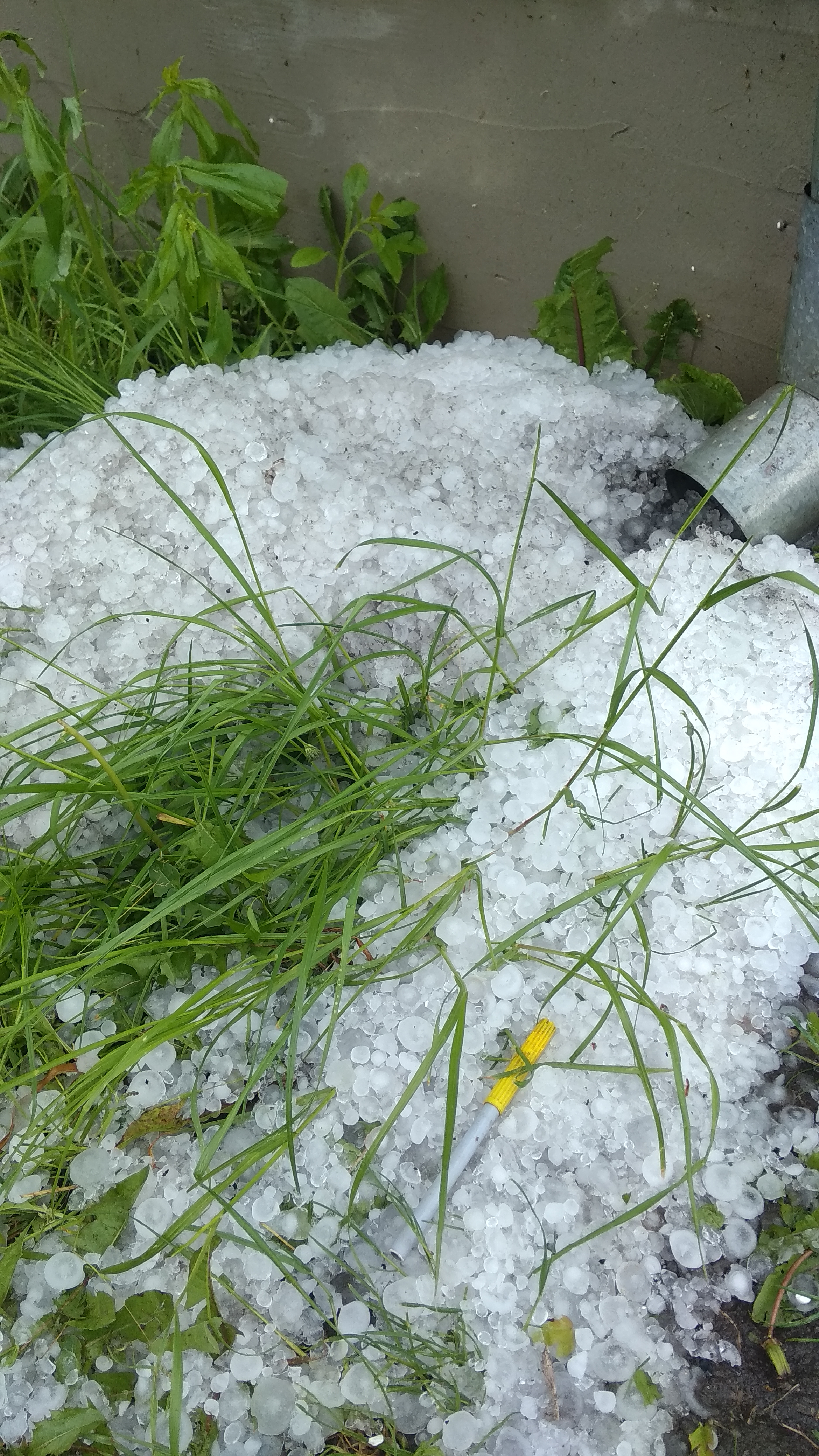 Навес для дров у родителей. Этот "шифер" довольно крепкий был.. Некоторые отверстия 4-5см. Повезло что машины все были по гаражам.