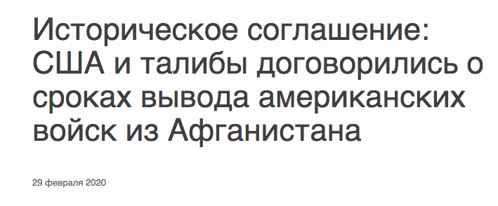 возможно , они там уже последние 20 лет косячили по полной.Bublik писав: ↑16 серпня 2021, 09:50А це що тоді?То не Трамп домовлявся з талібами про вивід військ?