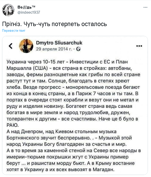 ну я же говорил, давай вот как и ты делаешь - буду говорить, что все очень плохо и даже хуже, потому как детских площадок в черновцах не появилось. а со всякими там дорогами я не сталкиваюсь, мне они не важны и не нужны, вообще даже не заметил строили их или это все выдумки какие то. как по мне отличная тактика и аргументация.