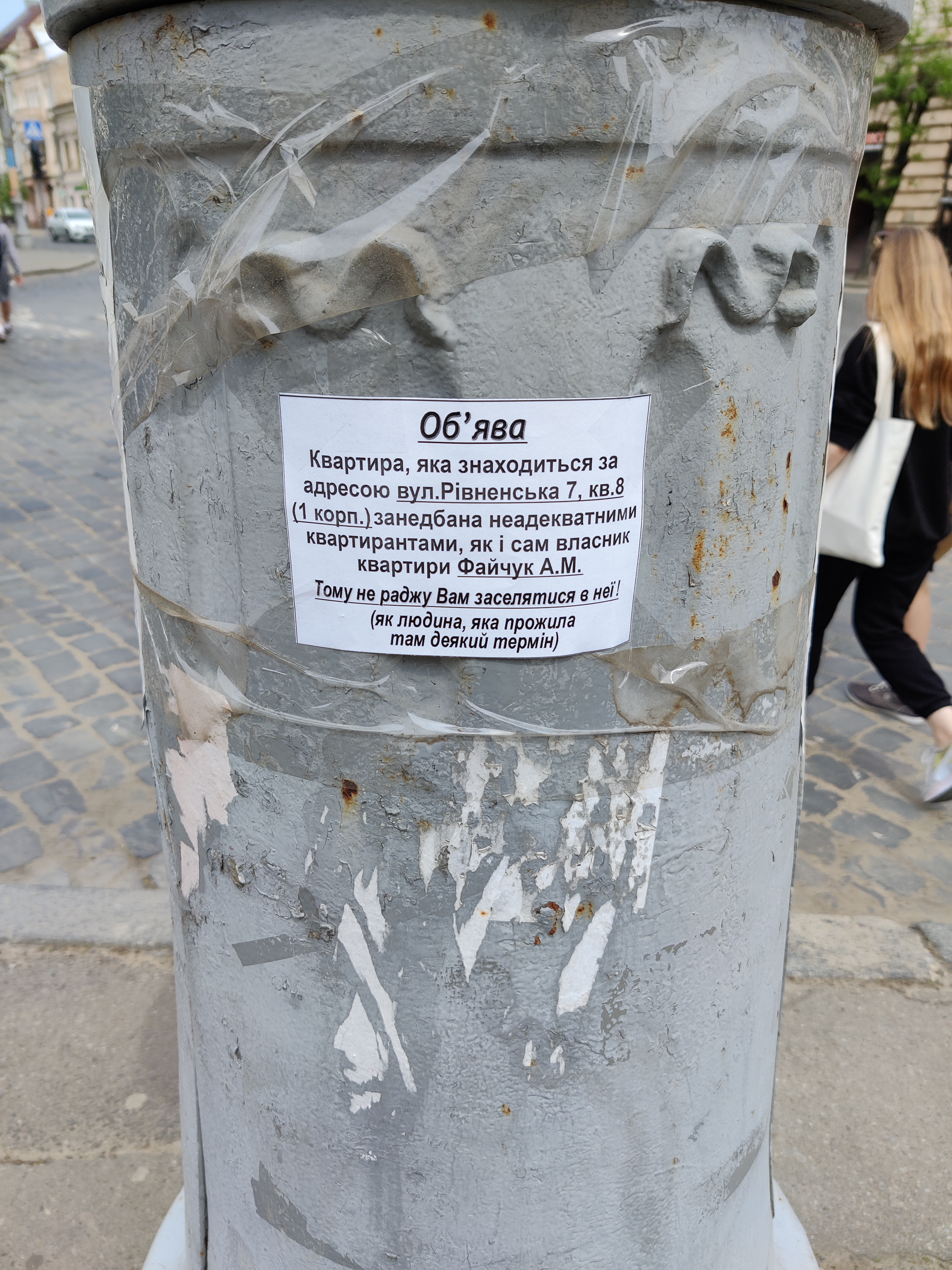 на столбе возле парка Шевченка. кто то конкретно обиделся, ибо где парк, а где ровенская