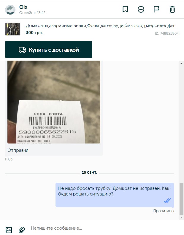 ну и если покупали олх доставкой, то можно было сразу отказаться прямо на НП.