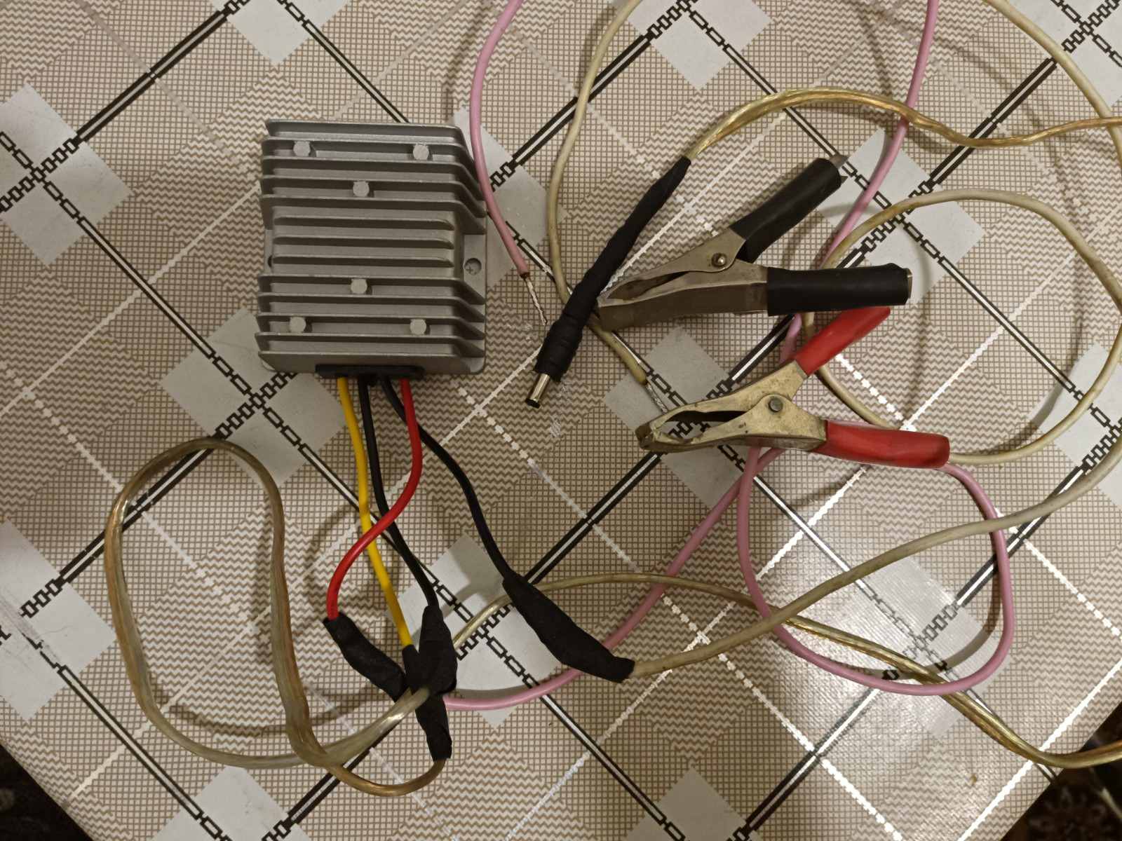 Давно юзаю 17" ноутбук без батареи, в основном для просмотра фильмов. Когда начали отключать электричество, заказал на Али преобразователь из 12В в 19В, 5А. Недавно получил его, на скорую руку нарастил провода и штекер, принёс домой обычный кислотный аккум 95Ач не первой свежести.