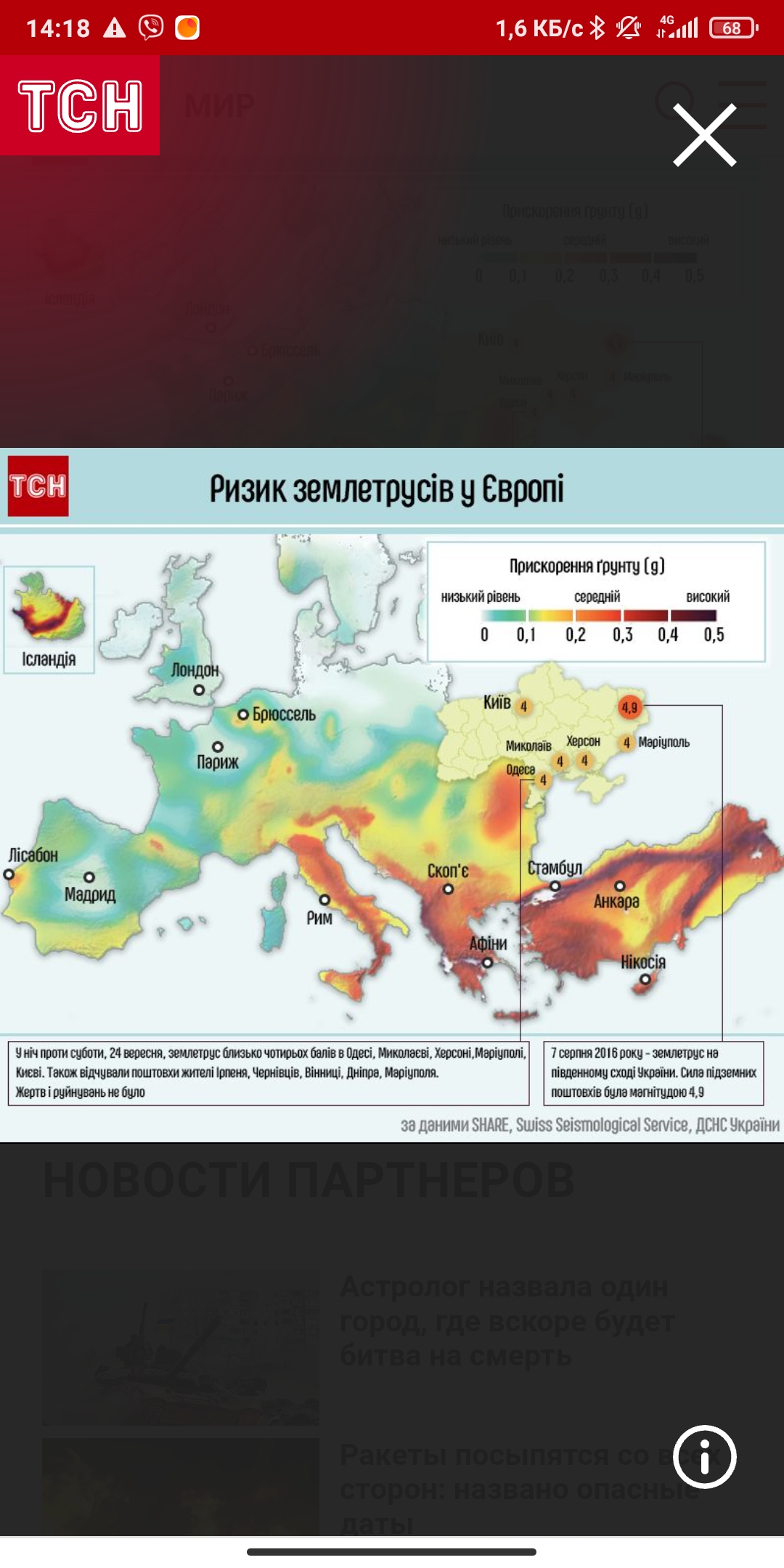 (2016)ТСН.ua решил составить карту рисков землетрясений в Европе и показать, где самая большая вероятность толчков, а где риск минимальный. На ней хорошо видно, что самым опасными являются Анкара и Афины, где возможно землетрясение мощностью до 10 баллов.