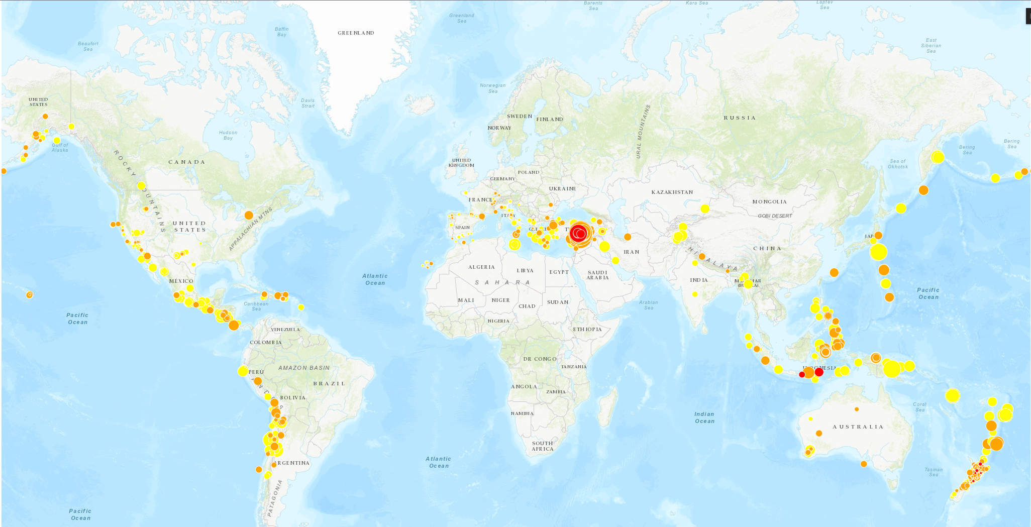Ось на цьому сайті можна відслідковувати землетруси майже в режимі он-лайн. Невеликі за потужністю в 2-4 бали відбуваються майже кожної години по всьому світі.