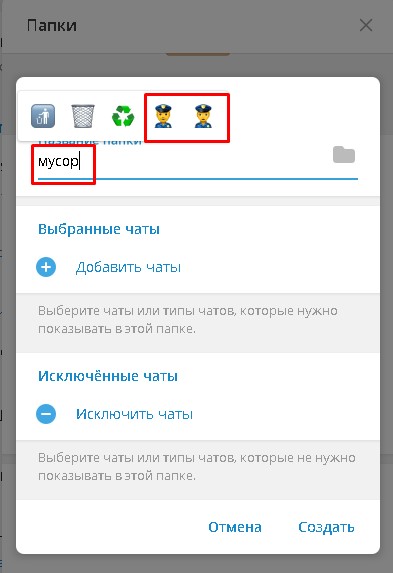 на компе в телеграмме решил сделать папку