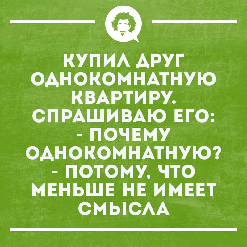 но вернемся к реалиям. допустим вот ты взрослый человек без семьи, который много времени проводит на работе и офис твой на театралке (допустим). и у тебя выбор снять однушку хрущевку квадратов в 35 где то на нижней южке, где убитая мебель/техника/подъезд/двор и шумные соседи или смартквартиру в 18 квадратов, сделанную из комнаты в старом фонде где то на кохановского - после капитального ремонта и с новой техникой, мебелью, соседей вообще не слышно из-за толстых стен, шума от заведений нет, потому как у тебя окна в двор колодец выходят.