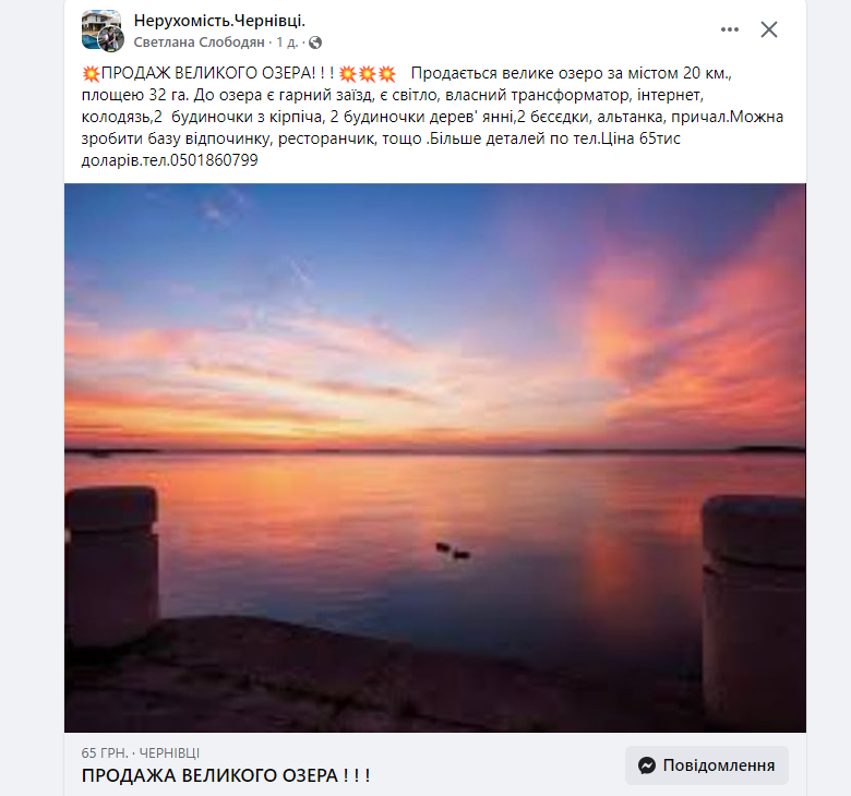 ну блин, как оценить то площадь. это много для искусственного ставка и типа настоящее озеро? а как тогда такое может продаваться?
