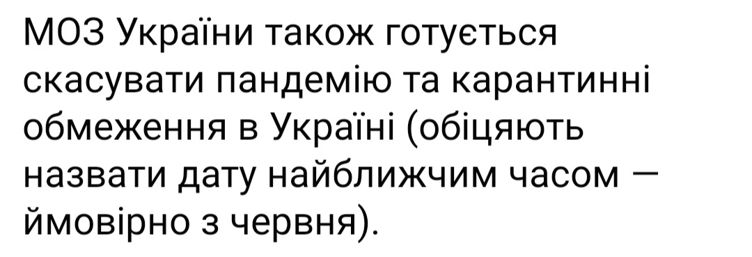 "З великою надією я оголошую, що глобальну надзвичайну ситуацію в галузі охорони здоров'я завершено. Однак це не означає, що з COVID-19 як з глобальною загрозою для здоров'я покінчено — минулого тижня вірус забирав життя що три хвилини, і це лише ті смерті, про які ми знаємо", — наголосив гендиректор Організації Тедрос Адханом Гебреєсус.