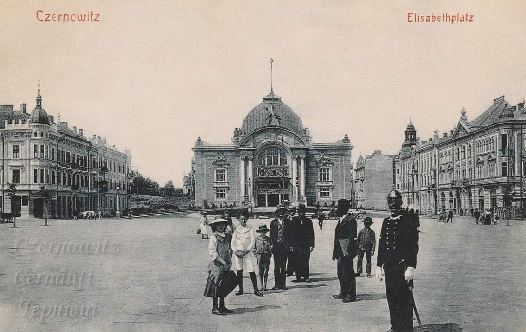 Два століття тому на цьому місці шумів густий ліс. 1800 року Чернівецька міська управа змушена була видати спеціальний циркуляр про організацію в цій місцевості облави на вовків. XIX ст. на недавній міській околиці, що стала гучно іменуватися площею Єлизавети, дислокувалися військові склади з провіантом. З повним розквітом торгівлі в стародавньому місті майдан «окупували» торгівці рибою. Непотамовний запах підказав і відповідну народну назву — Рибна площа, або як називали чернівецькі бюргери, Фішпляц. Згодом площа почала забудовуватися багатоповерховими кам'яницями. У повоєнний період, коли була остаточно завершена забудова площі виявилося, що будівля театру, яка колись домінувала на майдані, ніби розчинилася серед інших споруд. Тоді чернівецькі архітектори вирішили опустити середину майдану на 2,5 м, що надало всьому ансамблеві довершеності і оригінальності.