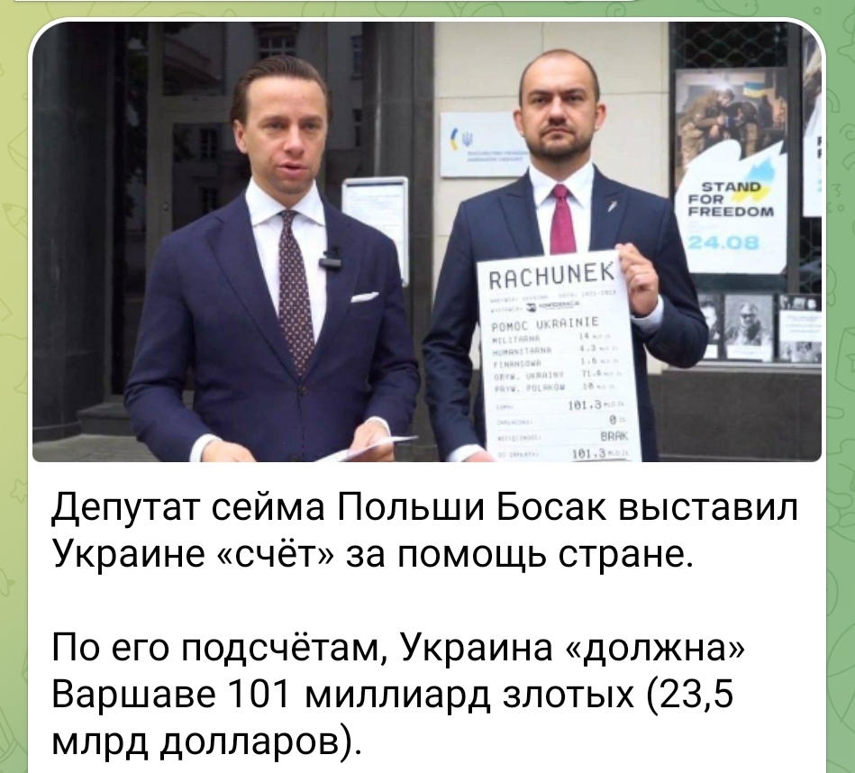 а кто нас всегда любил ?Дід Панас писав: ↑20 вересня 2023, 17:35Поляки ніколи не любили українців і завжди хотіли володіти нами і нашими територіями. Коли ж почалася реальна війна, вони реально сиканули, що №уйло піде далі прямо на них, тому і потужно допомагали, щоб війна не перекинулась до них. Тепер же, коли українці зупинили спільного ворога, а вони самі за час війни не спали, а добряче озброїлись і їм є чим протистояти, рішили що вже можна особо не надриватись у підтримці України. Ще вони розуміють що війна надовго і потрібно захищати свою економіку.