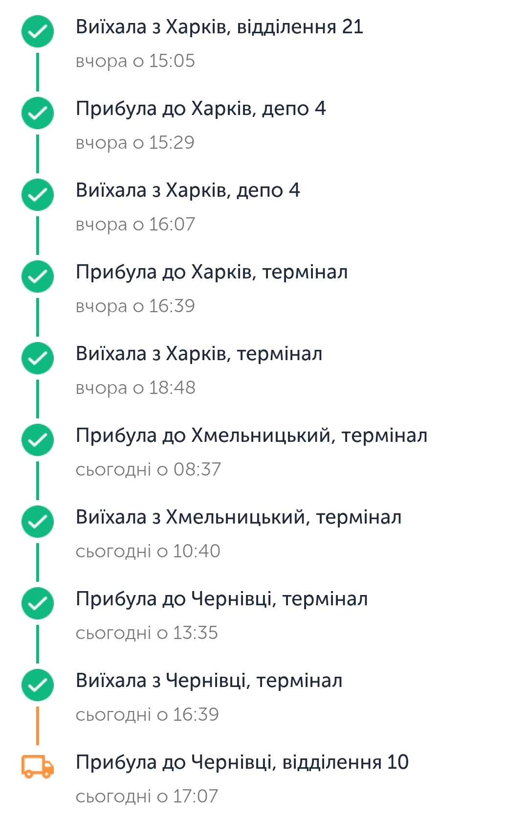 Трекер завжди рахує із запасом. Київські авто - доставка в 18:00....фактично, з 11ї до 13ї прибуває