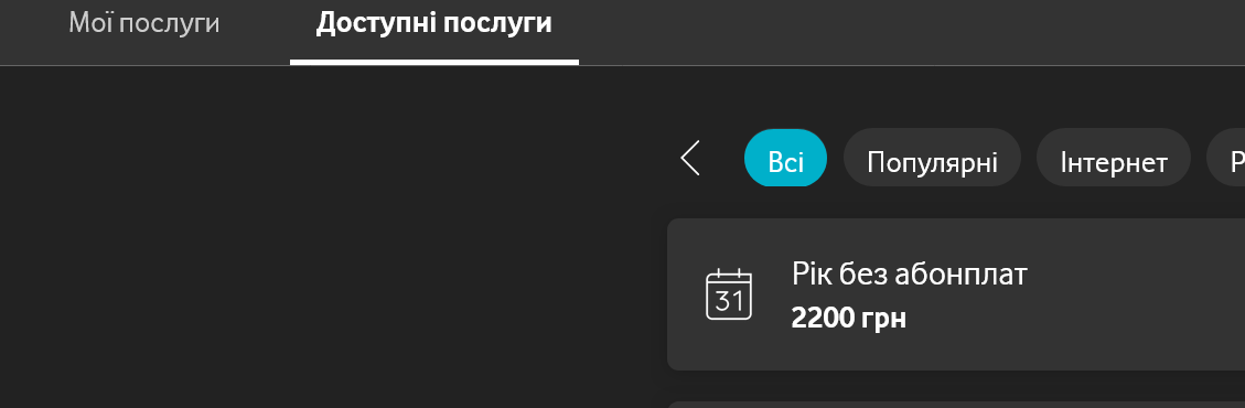Завжди підключав послугу "Рік без абонплат" щоб не паритись кожний місяць, в мене якраз спливає рік і зайшовши в додаток Водафона не бачу там такої можливості. В мене старий тарифний план Водафон СуперНет Про+ Але дивлюсь і в інших тарифних планах на які можна перевестись нема послуги "рік без абонплат"