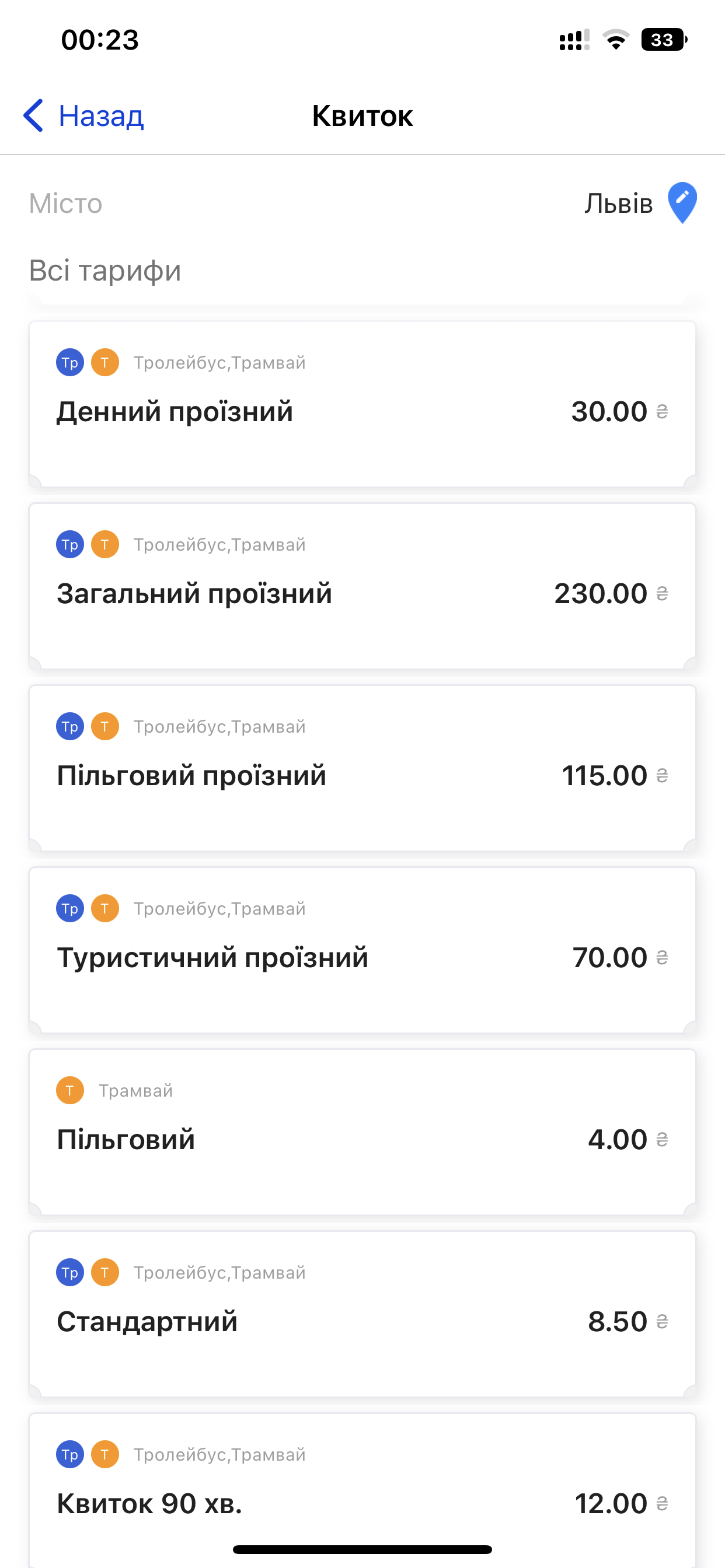 Во Львове при оплате через приложение/ или если купить билетик в киоске 8.50 грн, у водителя 10 грн это трамвай/троллейбусыOlegLOA писав: ↑04 жовтня 2022, 23:09Саме так :)