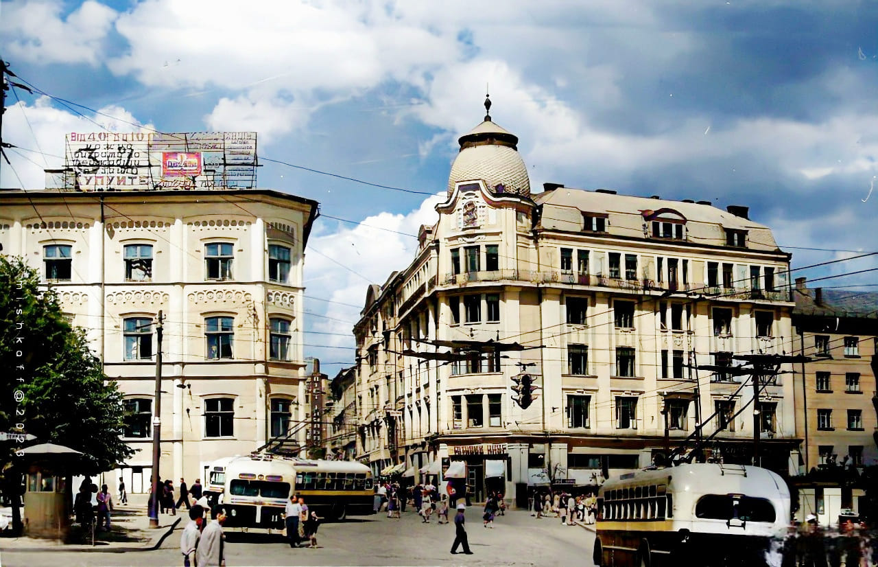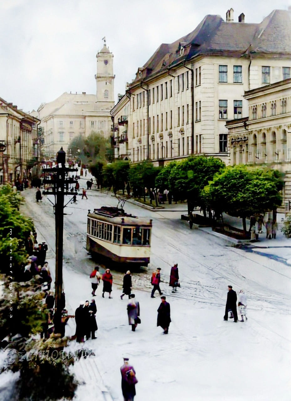 Читай опис до фото, це ШІ так бачить старі фото, тролейбуси на іншому фото теж неавтентично розмальовані.