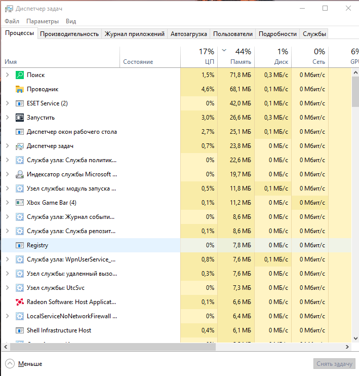 Потушил Epic Games Launcher, Steam, MS Teams, Google Chrome, Discord, Xbox(beta) - стало 42%. И это в простойной системе. В трее только антивирус. Нездорово...