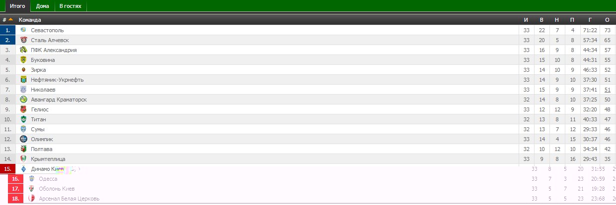 Я знал, что не пошутил. Но учитывая, что у некоторых людей у власти - "семь пятниц на неделю" - всё может случиться. :)ElectroChild писав:ау, я в своем посте не пошутил. если кривбас не найдет спонсора, то в следующем году в пл вместо них будет играть Говерла, как команда которая заняла 15 место в прошлом сезоне.