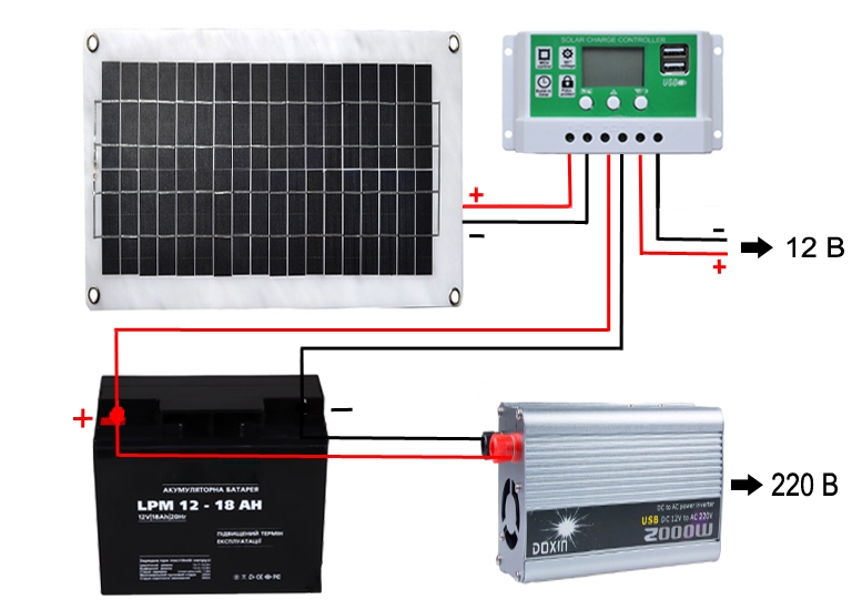 От подумав, що можна використати інвертор 12-220в та підключити до сонячної панелі і вже тоді в розєм 220 підключати зарядні пристрої до будь-чого.