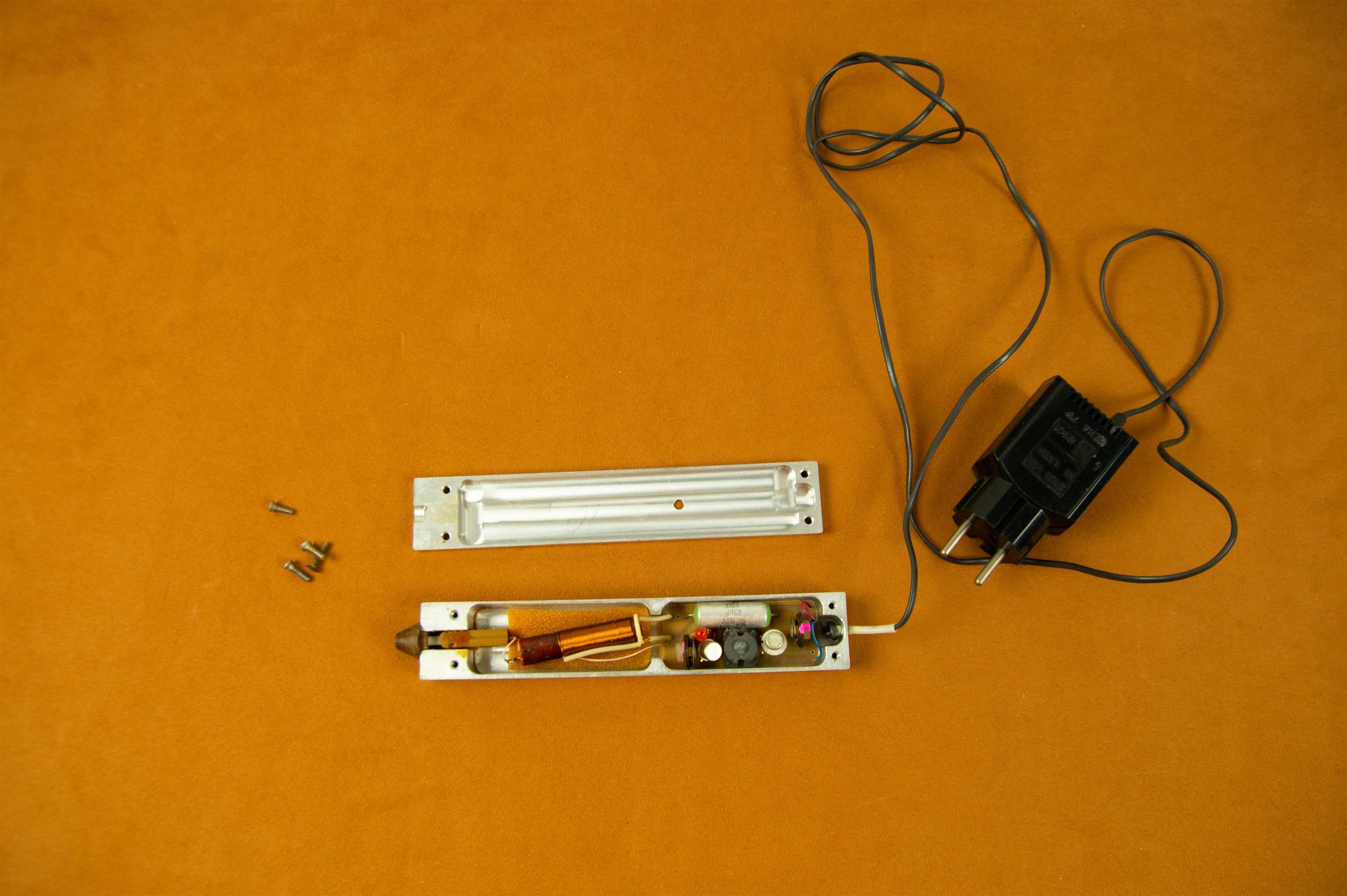 Это нечто скорее всего генерит высокое напряжение, внутренности очень похожи на аккумуляторную электрозажигалку для газа которую делал "Гранит" во время перестройки, только это чудо в металле.