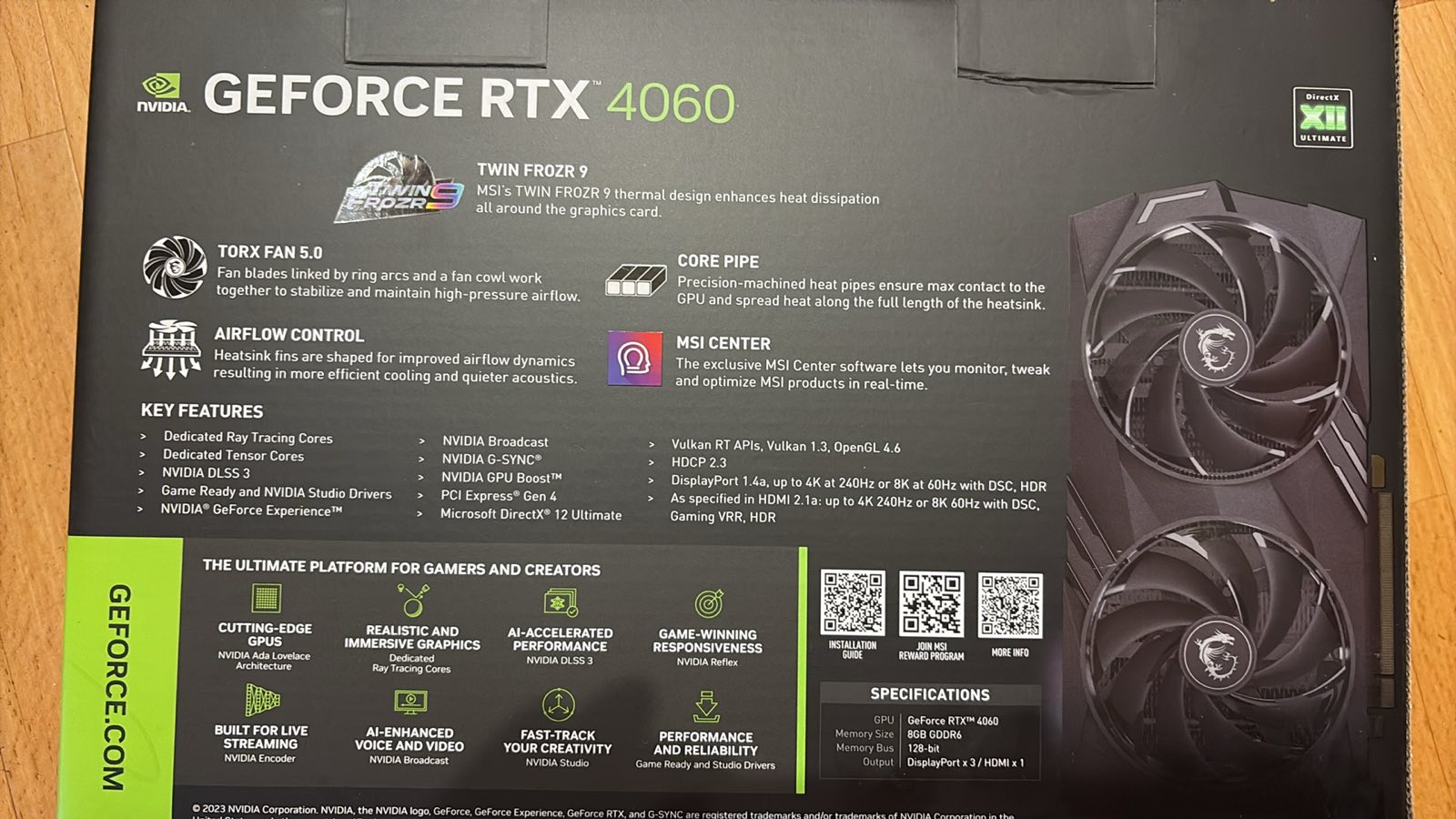 Відеокарта RTX 4060 Gaming X 8G. Купив 25.11.2023 - тоб то вона ще на гарантії. (гарантія 36 місяців). Нічого не грілось, не вскривалось. Працює чудову, в Full HD всі іграшки на ультрах - або високі (Сталкер, Кіберпанк в томуж списку) без жодних нарікань. Економна 115 Вт, в нас час це важливо. Чудовий варіант за свої гроші.