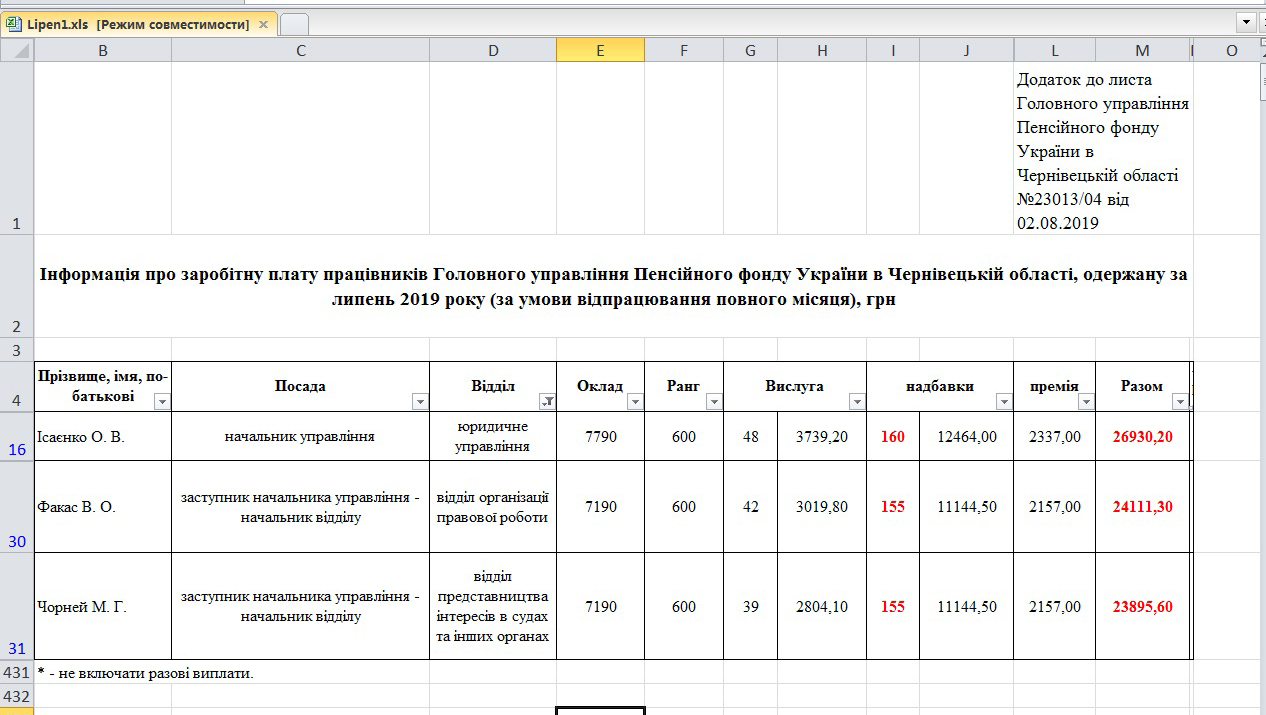 В юридичному управлінні Головного управління ПФУ в Чернівецький обл. працює 20 юристів.
