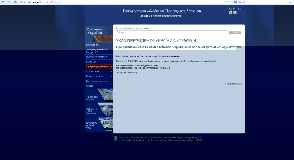 УКАЗ ПРЕЗИДЕНТА УКРАЇНИ № 299/2014