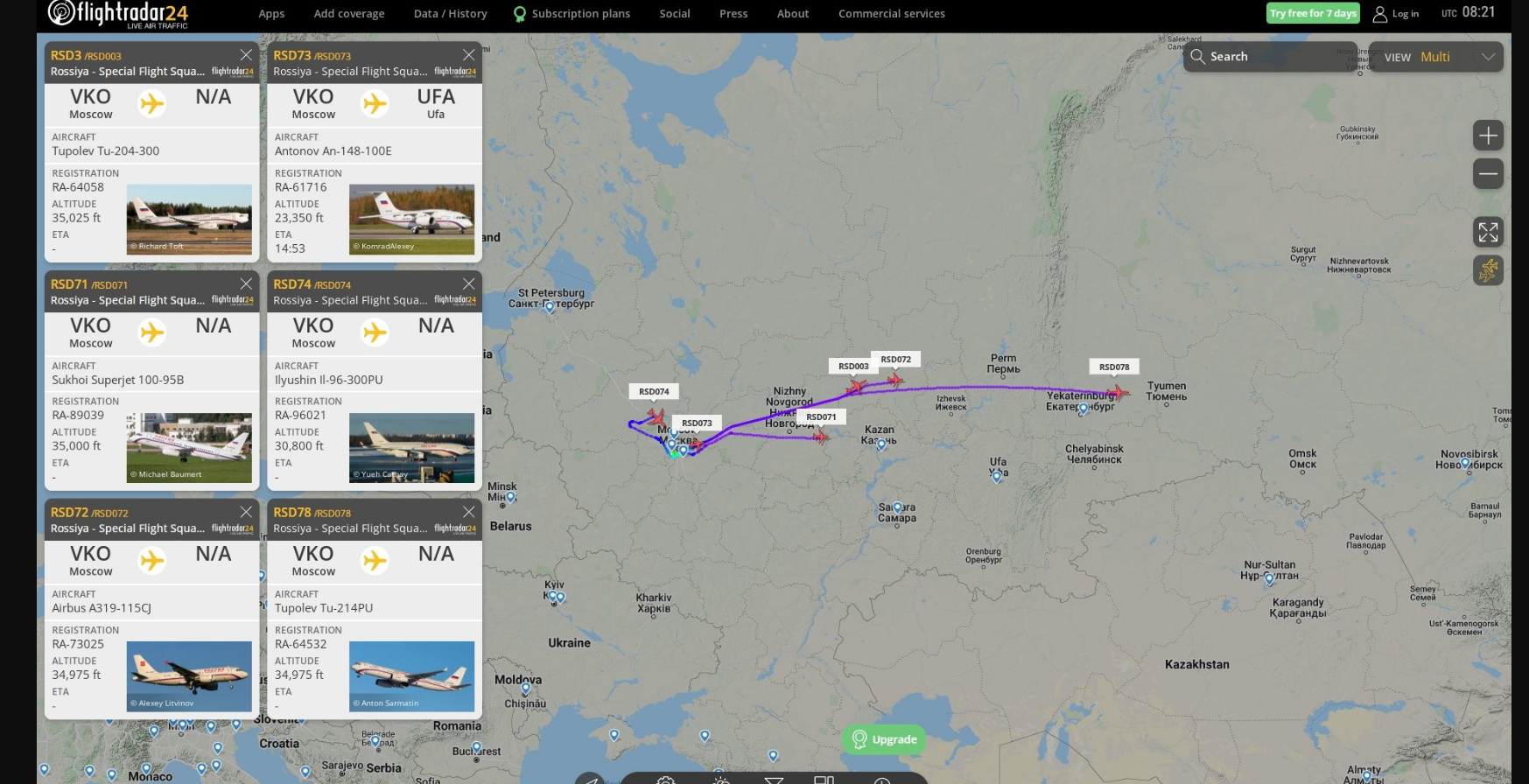 По крайней мере, восемь (8) и, возможно, до двенадцати (12) российских военных самолетов, которые используются для перемещения VIP-персон и других типов, которые перемещают грузы, курсируют из Москвы в Уральские горы ... где расположены российские ядерные бункеры.