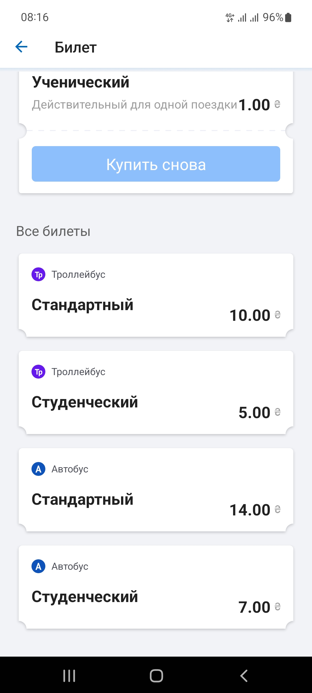 Во Львове при оплате через приложение/ или если купить билетик в киоске 8.50 грн, у водителя 10 грн это трамвай/троллейбусыOlegLOA писав: ↑04 жовтня 2022, 23:09Саме так :)