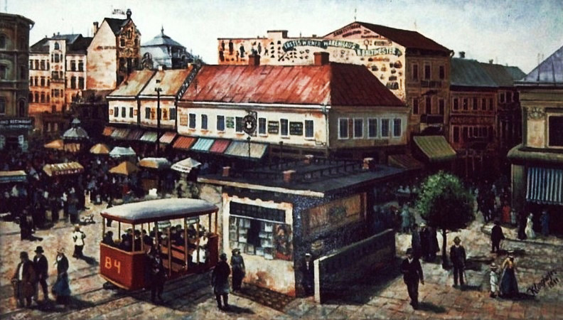 Малюнок художника Berthold Klinghofer 'Czernowitzer Ringplatz' 1911р.