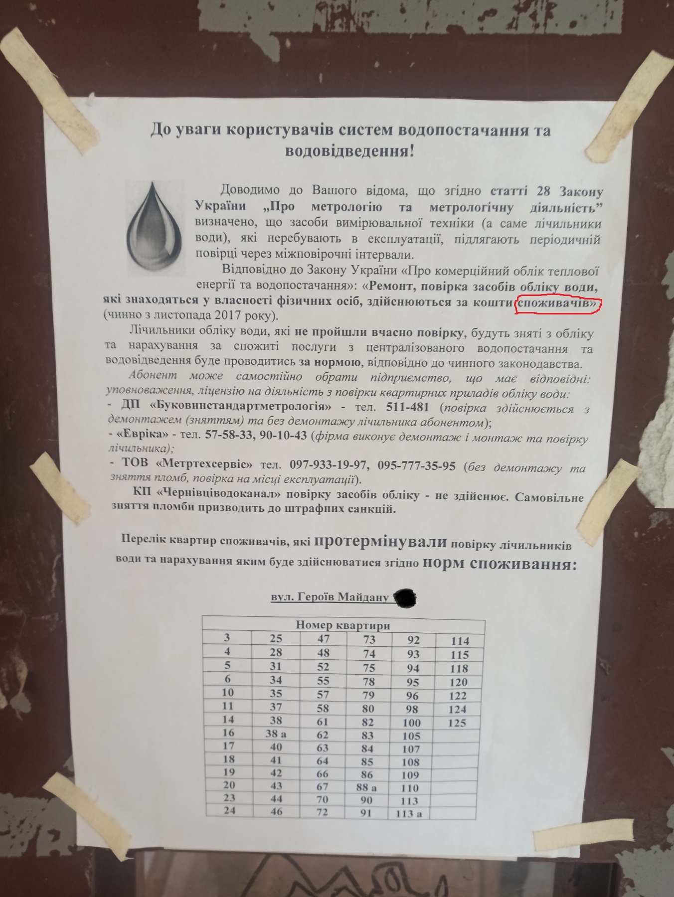 Наклеили на подъезд бумагу проверить счетчики, в случае отказа снимут счетчик с учета, местные пенсионеры вызывали, приходит чел, смотрит, берет 290 грн и уходит.
